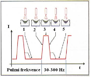 PULSE - je to funkcia zváračky, ktorá vie zmeniť priebeh zváracieho prúdu na pulzujúce, pulzy sa odohrávajú sa v kladnej půlvne zváracieho prúdu. Zváranie sa odohráva v modifikovanej forme režime "spray arc". Zvárací prúd pulzuje z minimálnej hodnoty na maximálnu a frekvencia impulzov sa dá nastaviť. Túto funkciu používajú zváračky TIG i zváračky MIG-MAG. Táto funkcia umožňuje lepšie zvárať tenké materiály. Priebeh zváracieho procesu je nasledovné: Zapáli sa oblúk vo fáze min. zváracieho prúdu a nahrieva sa zvarenec. V momente max. Hodnoty zváracieho prúdu dochádza k odtavenia kvapky zváracieho drôtu (MIG-MAG) a nánosu na zvarenec. Pulzácia je nastaviteľná zvyčajne v rozmedzí 30-300 Hz. Viď obrázok.