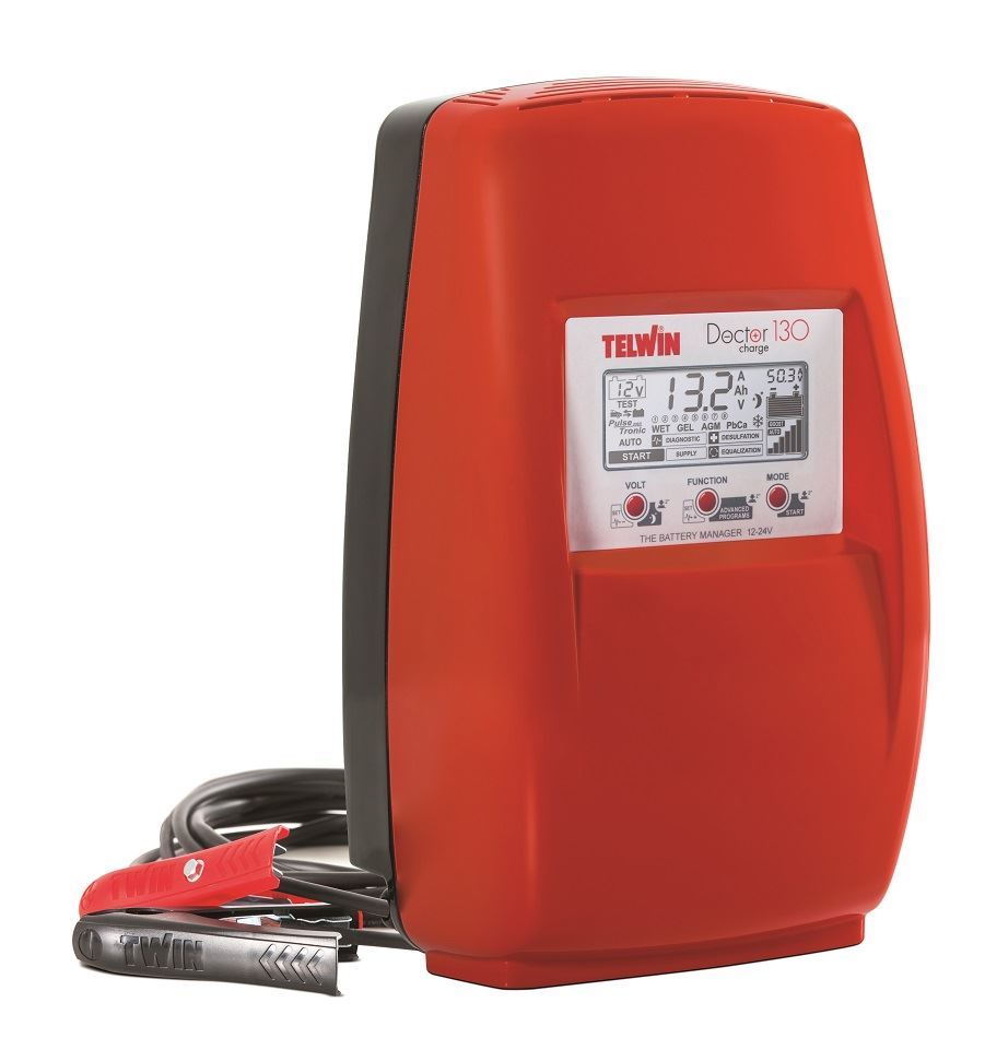 Microprocesorová pulzná nabíjačka Doctor Charge 130 Telwin, 12-24 V s funkciou desulfatizace autobatérie, diagnostikuje batéria, nabíja automaticky všetky druhy autobatérií, udržuje stálu kapacitu, pomoc pri štartovaní.