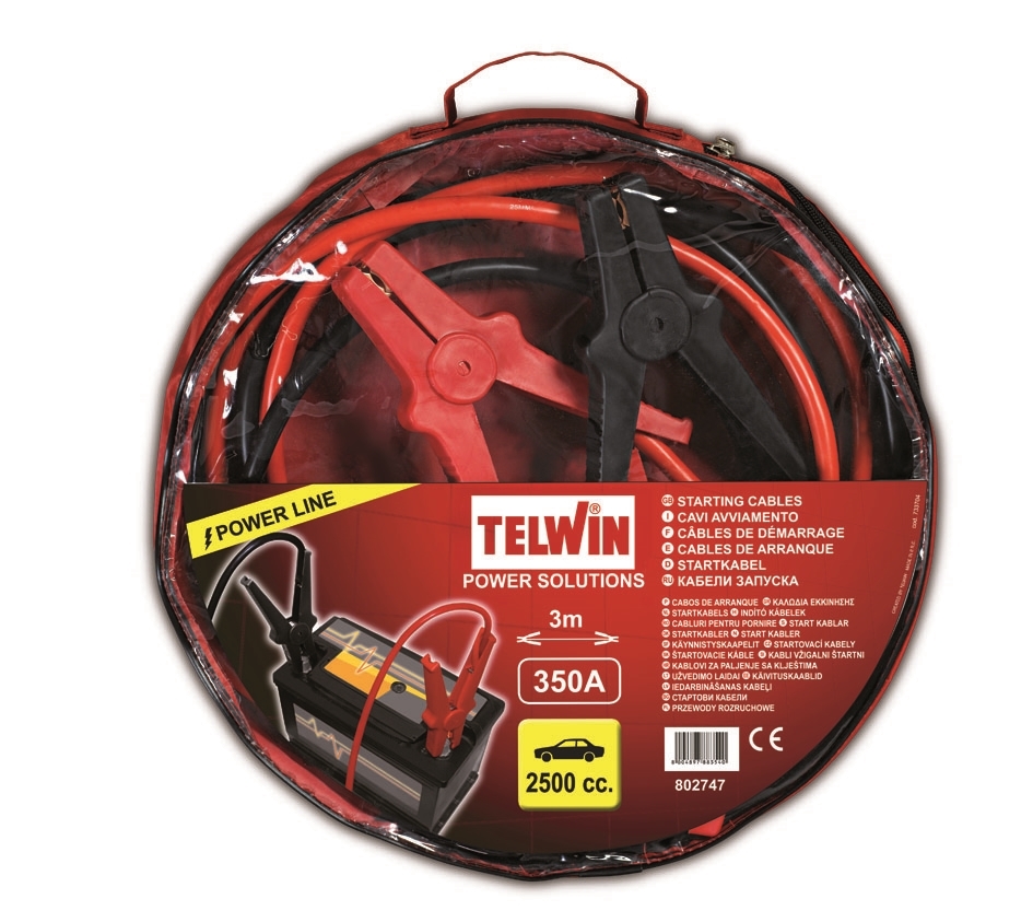 Štartovacie káble 350 A Telwin pre núdzové naštartovanie, dĺžka 3 m.