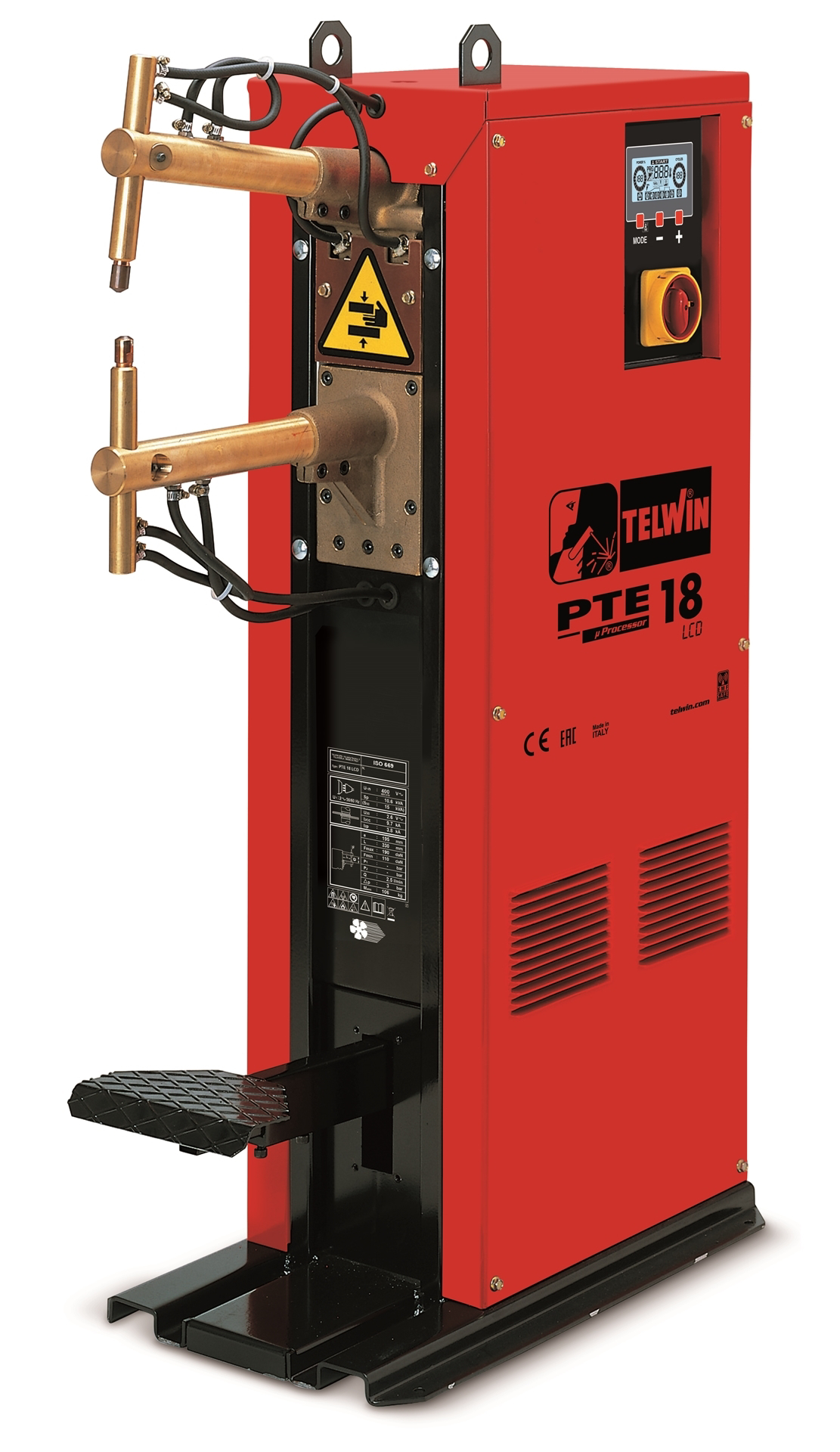 Stĺpová bodovacia zváračka Telwin PTE 18 LCD, ramená 700 mm, pre zváranie plechov max. 3 + 3 mm, 2x 400 V, tyristorově riadená, s mechanickým nožným ovládaním, vodou chladená ramená