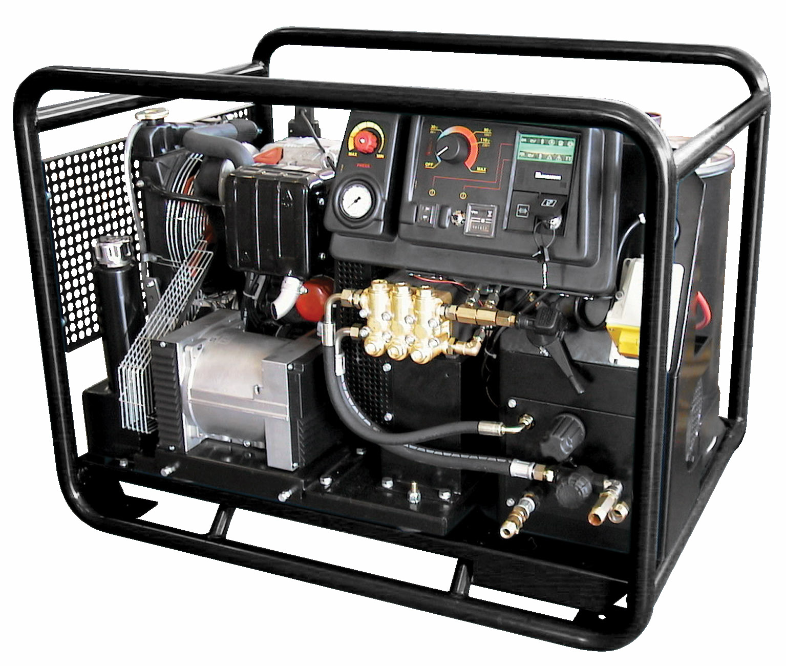 Vysokotlaková umývačka s ohrevom vody s naftovým motorom Clark Hot 17 Fasa výkon 1320 l / hod, tlak 200 bar, nastaviteľný ohrev na max. 110°C