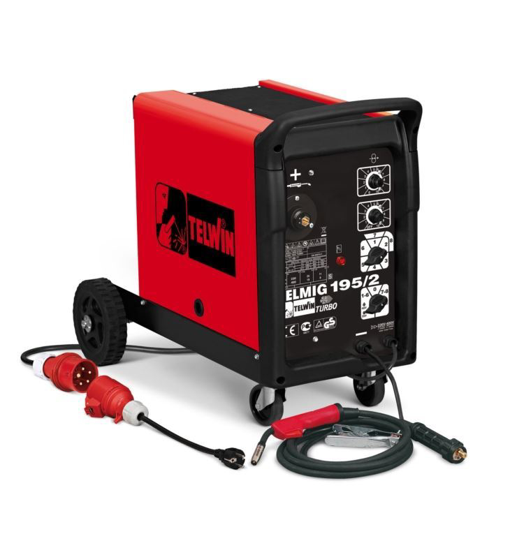 Dielenská profesionálny zváračka MIG MAG Telmig 195/2 Telwin s bodovacie automatikou, 230/400 V, 30-200 A, 8 stupňov regulácie prúdu, pre zváranie v ochrannej atmosfére. Cievka drôtu do 15 kg. Ideálny stroj pre profesionálne dielne a karosárov. Made in ITALY Ekvivalent Einhell Euro 190.