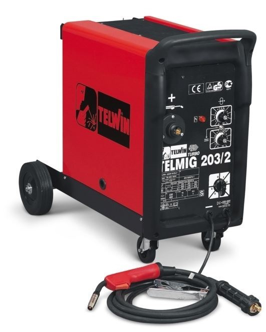 Dielenská profesionálna zváračka MIG MAG Telmig 203/2 Telwin s bodovacie automatikou, 3x400 V, (možnosť 3x230 V) 200 A, 6 stupňov regulácie prúdu, pre profi dielne, Made in Italy. Zváračka pre profesionálne dielne, karosárske opravovne. Ideálne zváračka pre údržbársku dielňu. V základnej výbave horák s Euro koncovkou, redukčný ventil, zvárací drôt.